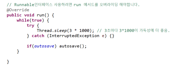 Thread.sleep(3 * 1000); // 3초마다 3*1000이 가독성에 더 좋음.
