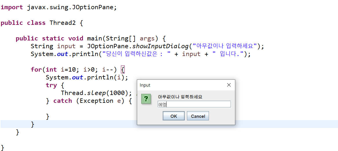 Thread.sleep(1000); //지연시간 1초로 줍니다.
